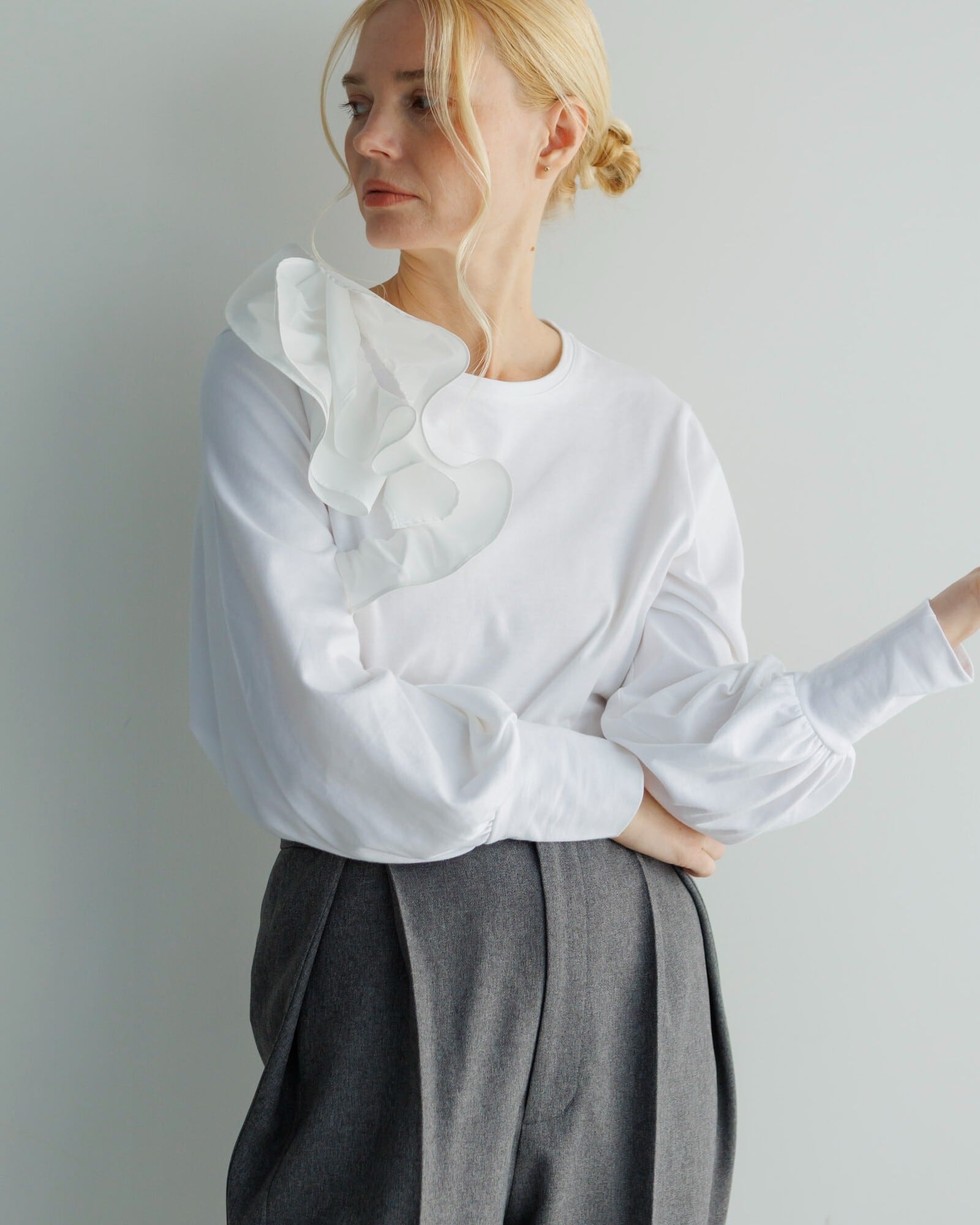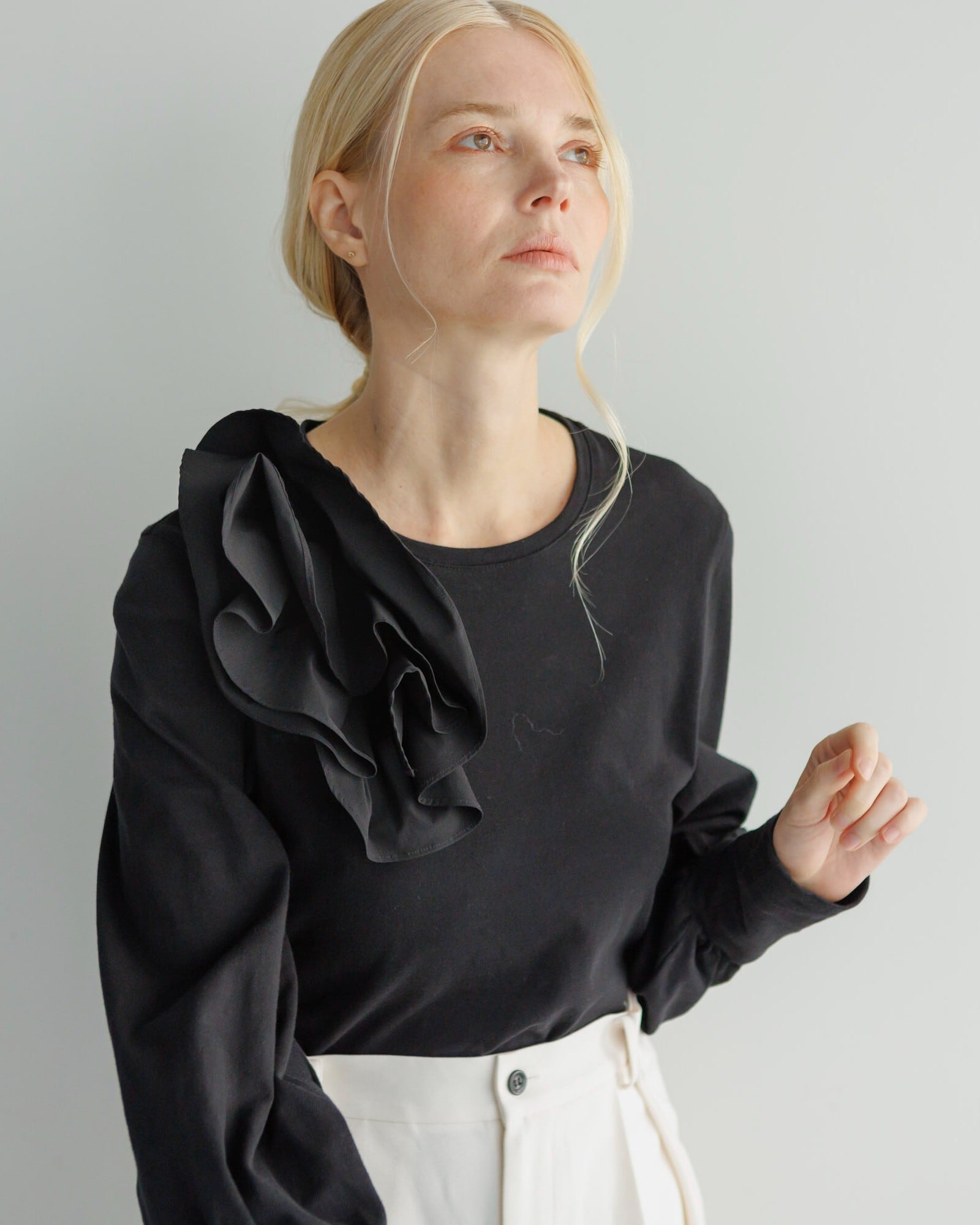 上質なコットンのカットソーに胸元にオハナモチーフを