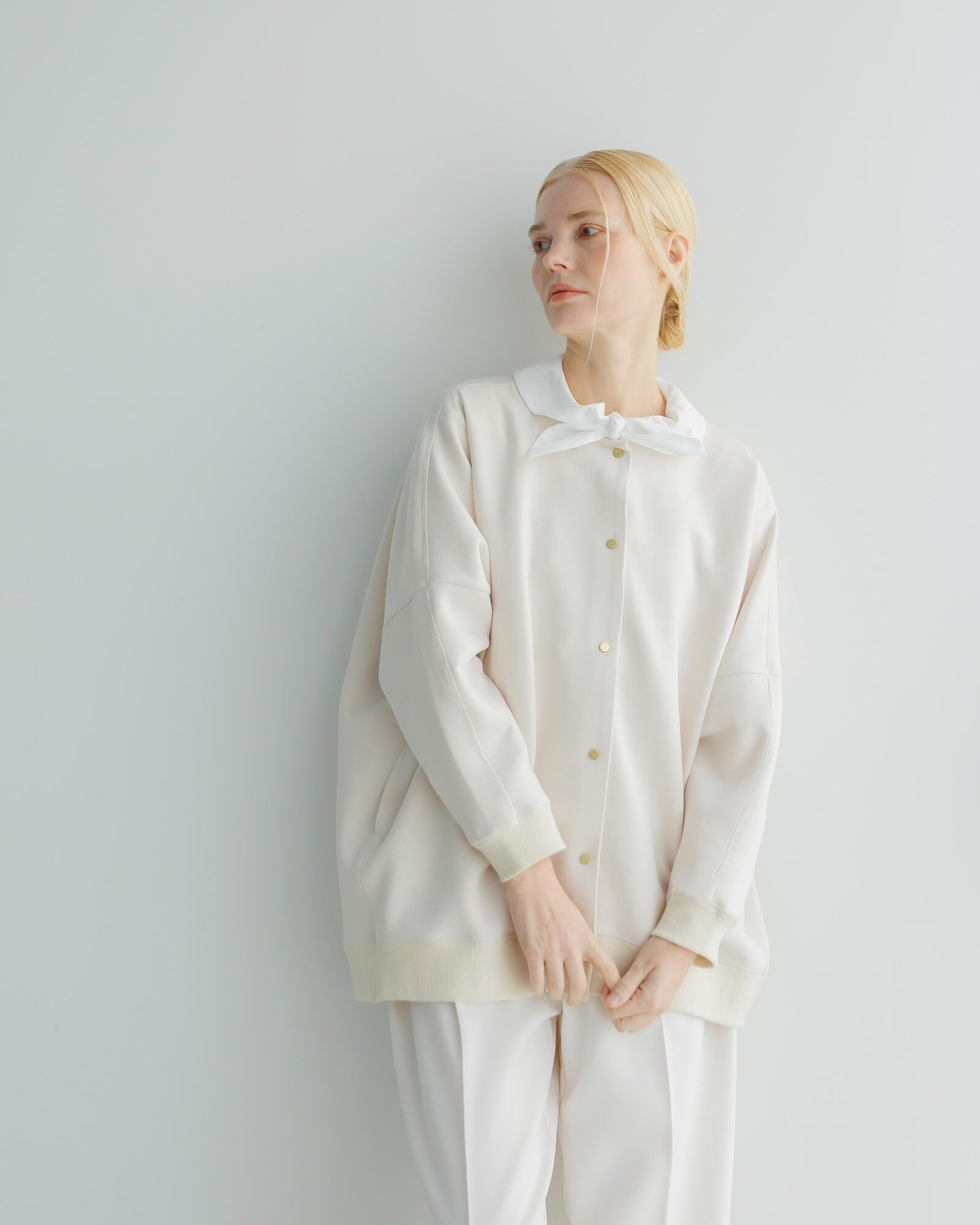 ゴールドボタンと背中のコクーンシルエットがとても可愛いブルゾン