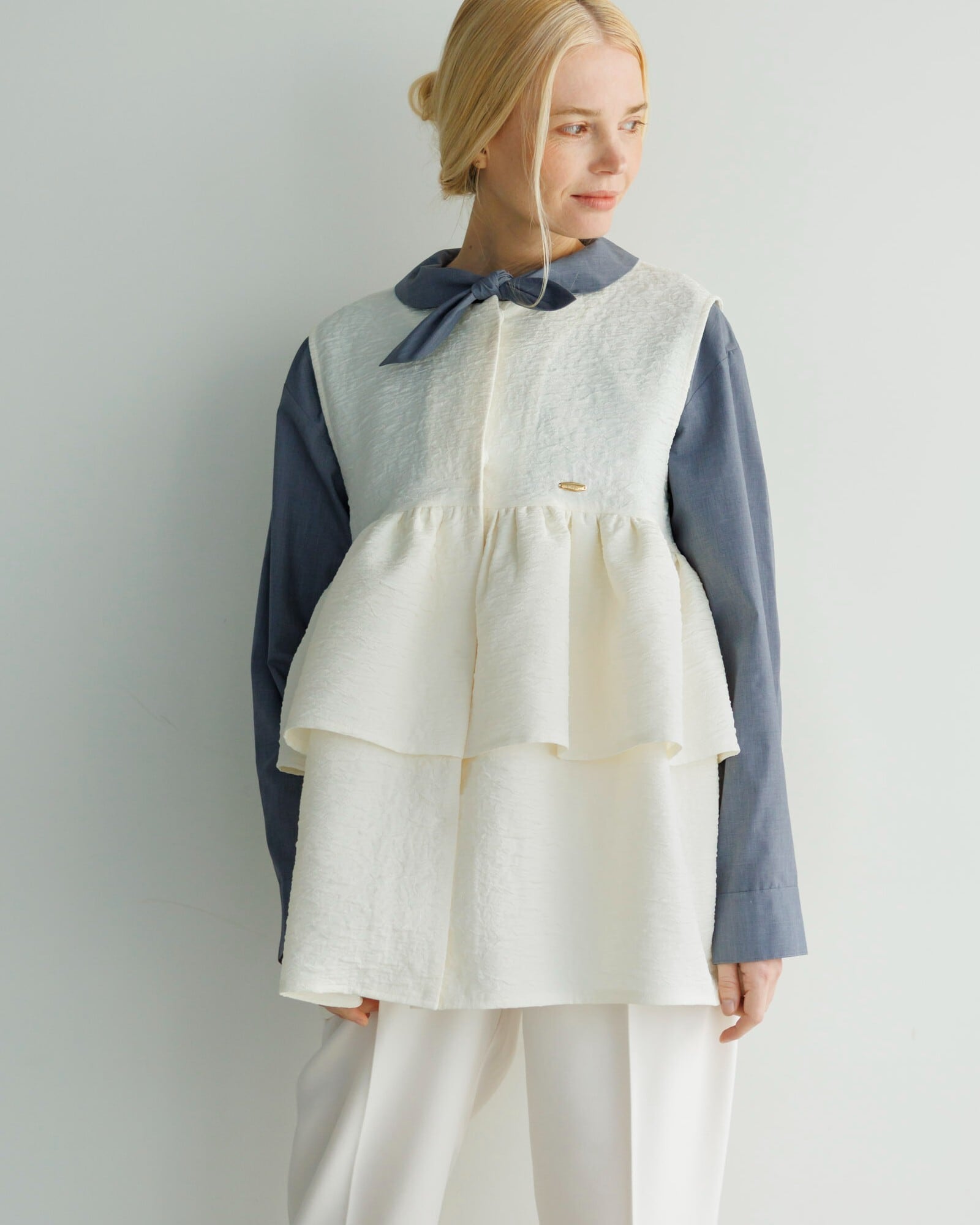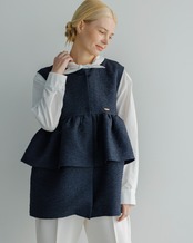 ふんわり張りと軽さのある膨れジャガード素材のジレ